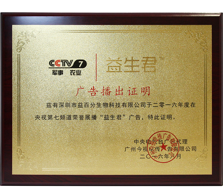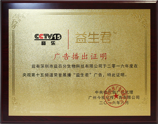 2019年益百分益生君榮獲“益生菌消費十大影響力品牌"