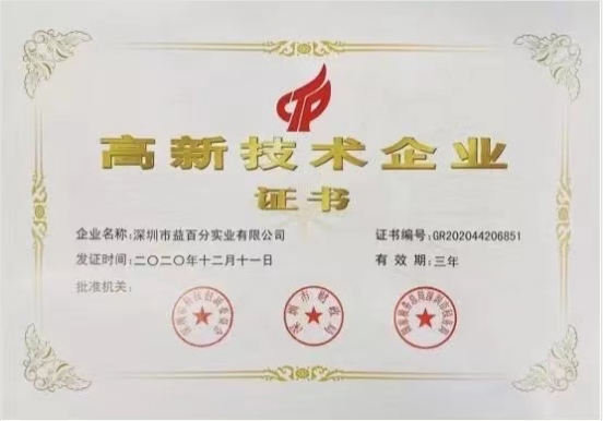 2020年益百分榮獲“國家高新技術(shù)企業(yè)”認證
